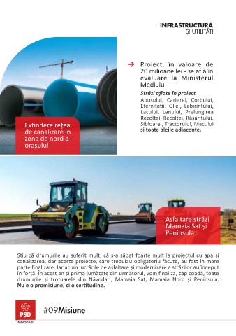 drumurile și trotuarele din Năvodari, Mamaia Sat, Mamaia Nord și Peninsula.